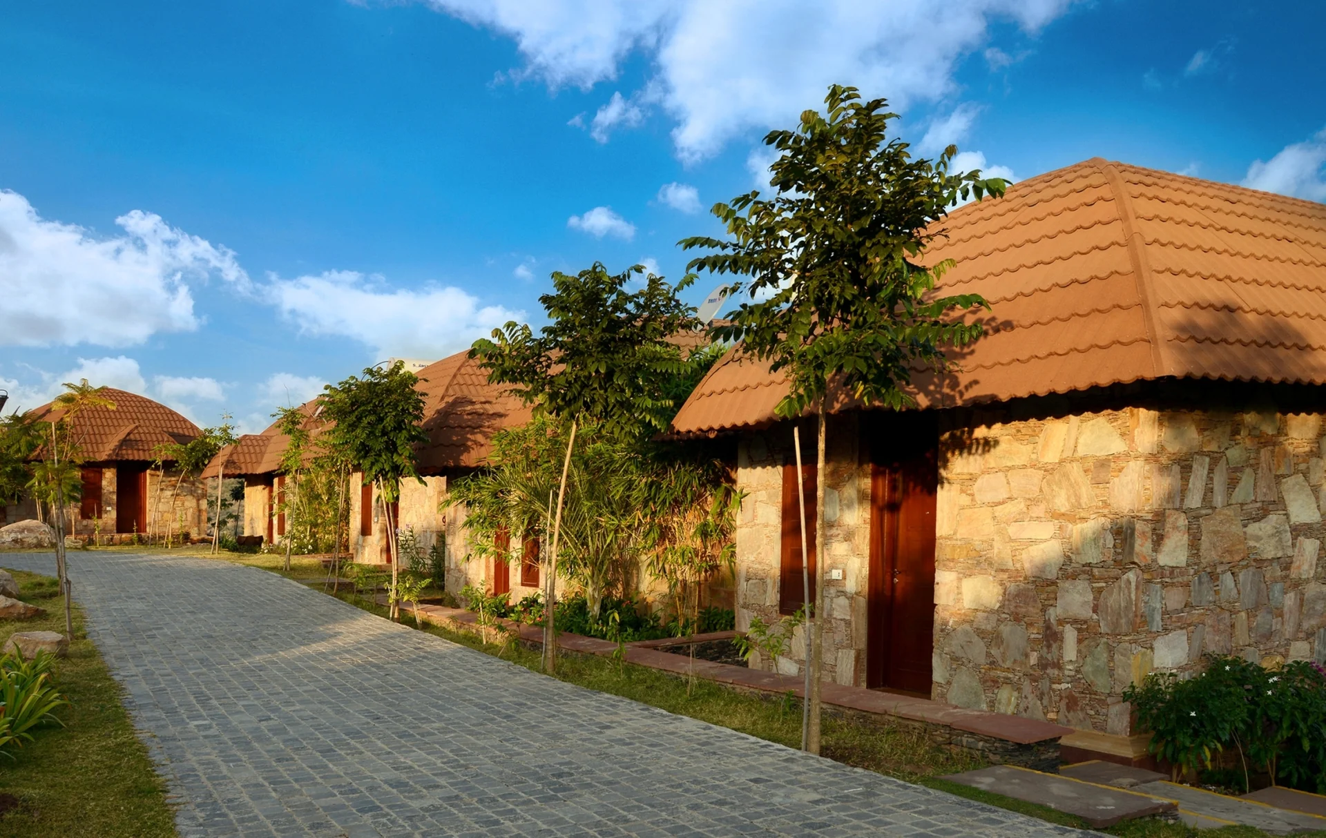 The accommodation consists of independent cottages with balconies, offering privacy and a nature-centric "resort" feel rather than a typical hotel block.