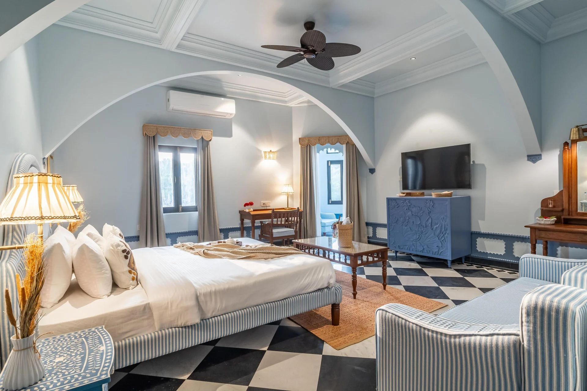 Yes, the resort offers modern luxury cottages and rooms equipped with all contemporary amenities while maintaining a heritage aesthetic.
