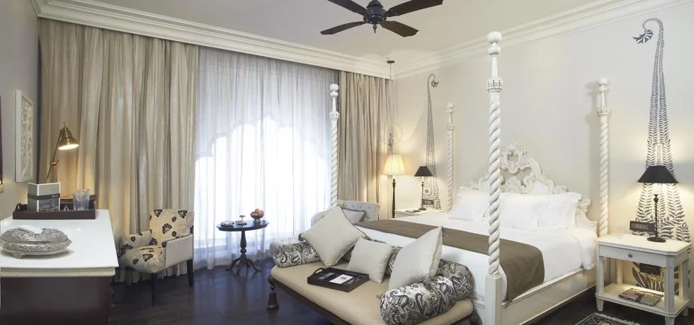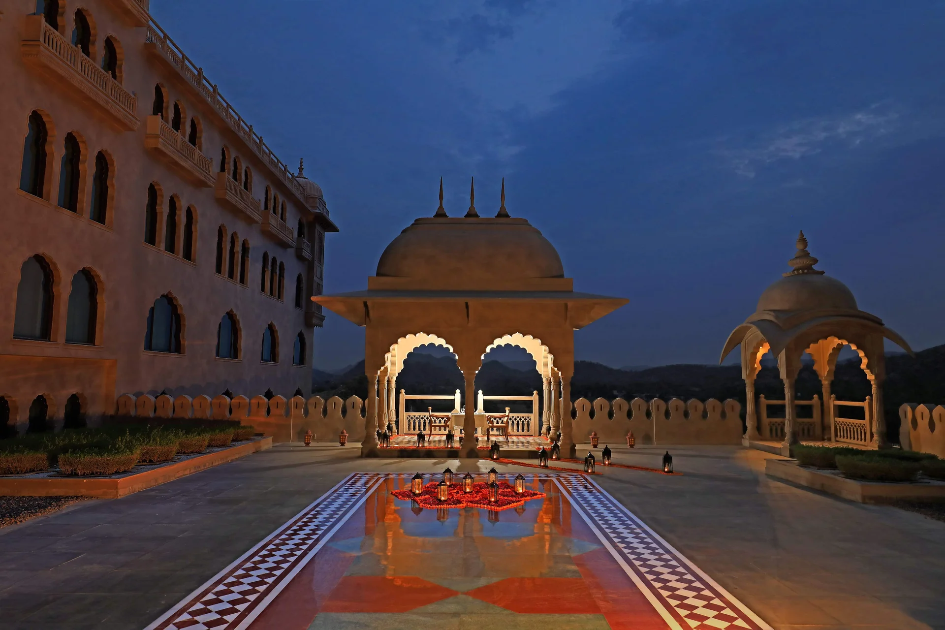 Nestled amidst the majestic Aravalli hills, Fairmont Jaipur is an ode to the Pink City's royal heritage. With its grand architecture inspired by Mughal and Rajputana traditions, this palace hotel offers a breathtaking setting for a wedding that is both grand and intimate. From the moment your guests enter the ornate gates, they are transported to an era of kings and queens, making every ceremony feel like a chapter from a royal history book.