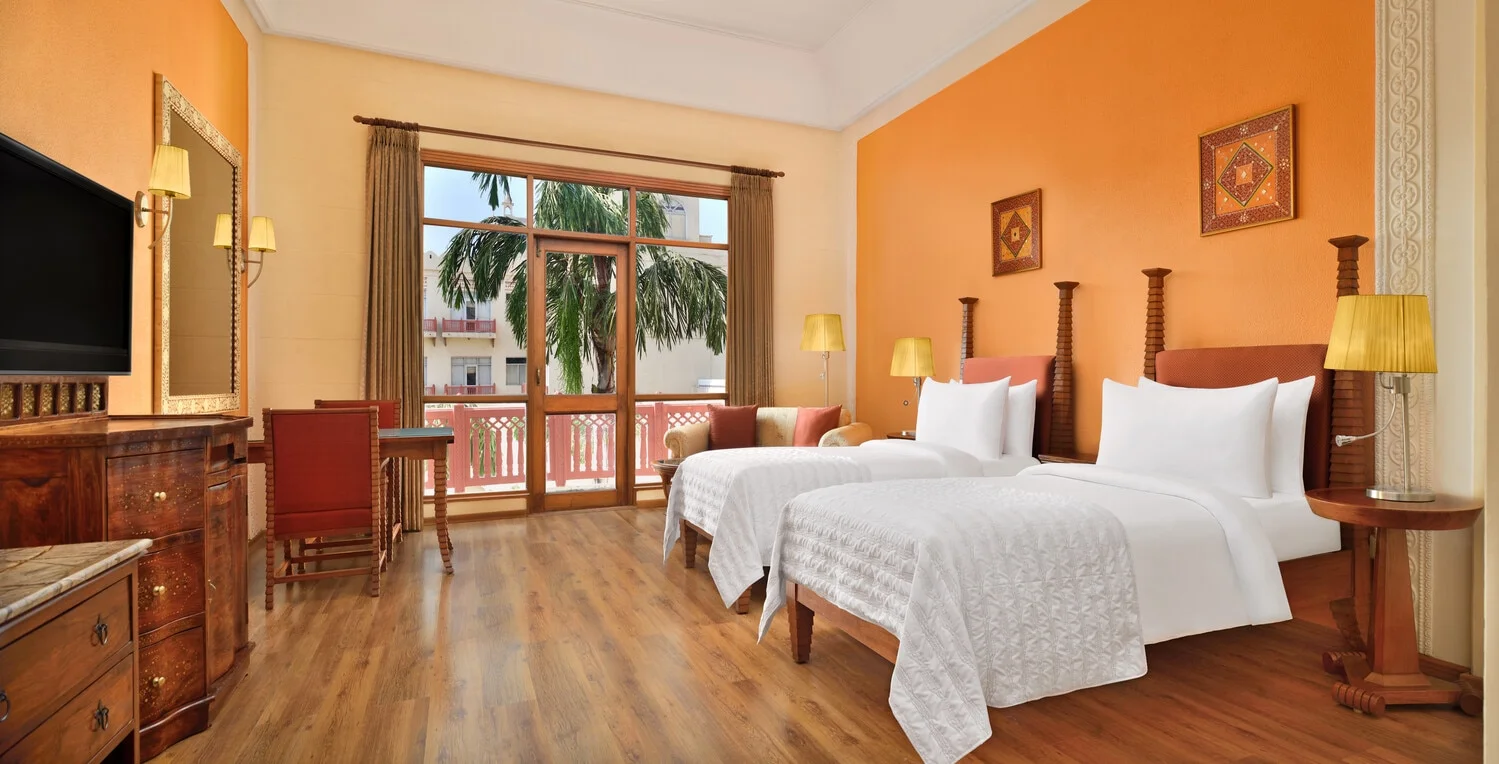 Le Méridien Jaipur Resort & Spa is a stunning tribute to the grandeur of Rajputana architecture. With its gleaming white stone, intricate peacock arches, and sprawling 25-acre estate, it offers a setting that is both regal and serene. The resort is designed to inspire, offering a perfect blend of traditional heritage and modern European luxury. From the grand Amer Ballroom to the expansive lawns, every corner provides a picturesque backdrop for a fairytale wedding.