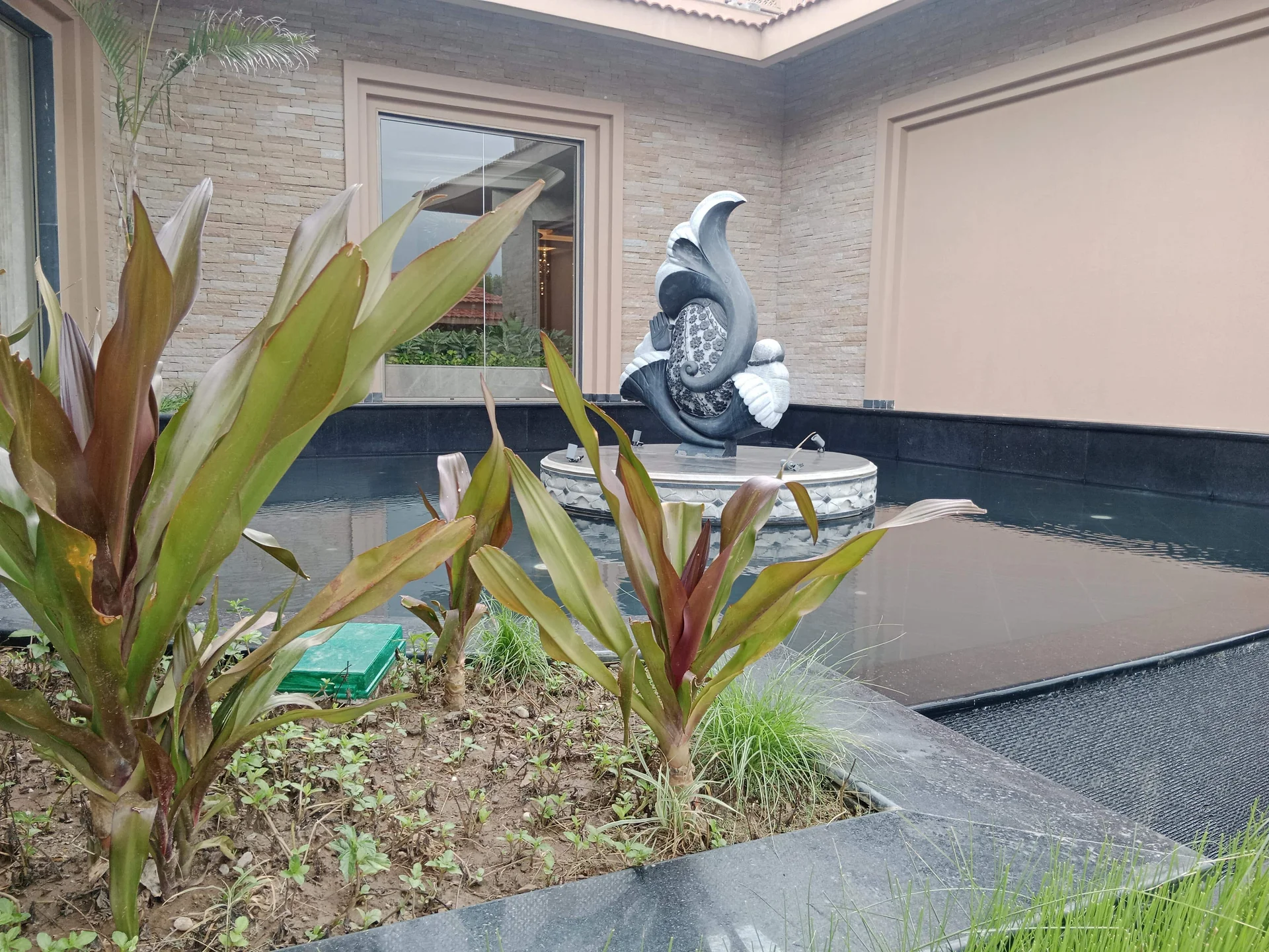 A unique, tiered outdoor venue perfect for a truly cinematic sangeet or wedding ceremony under the open sky.