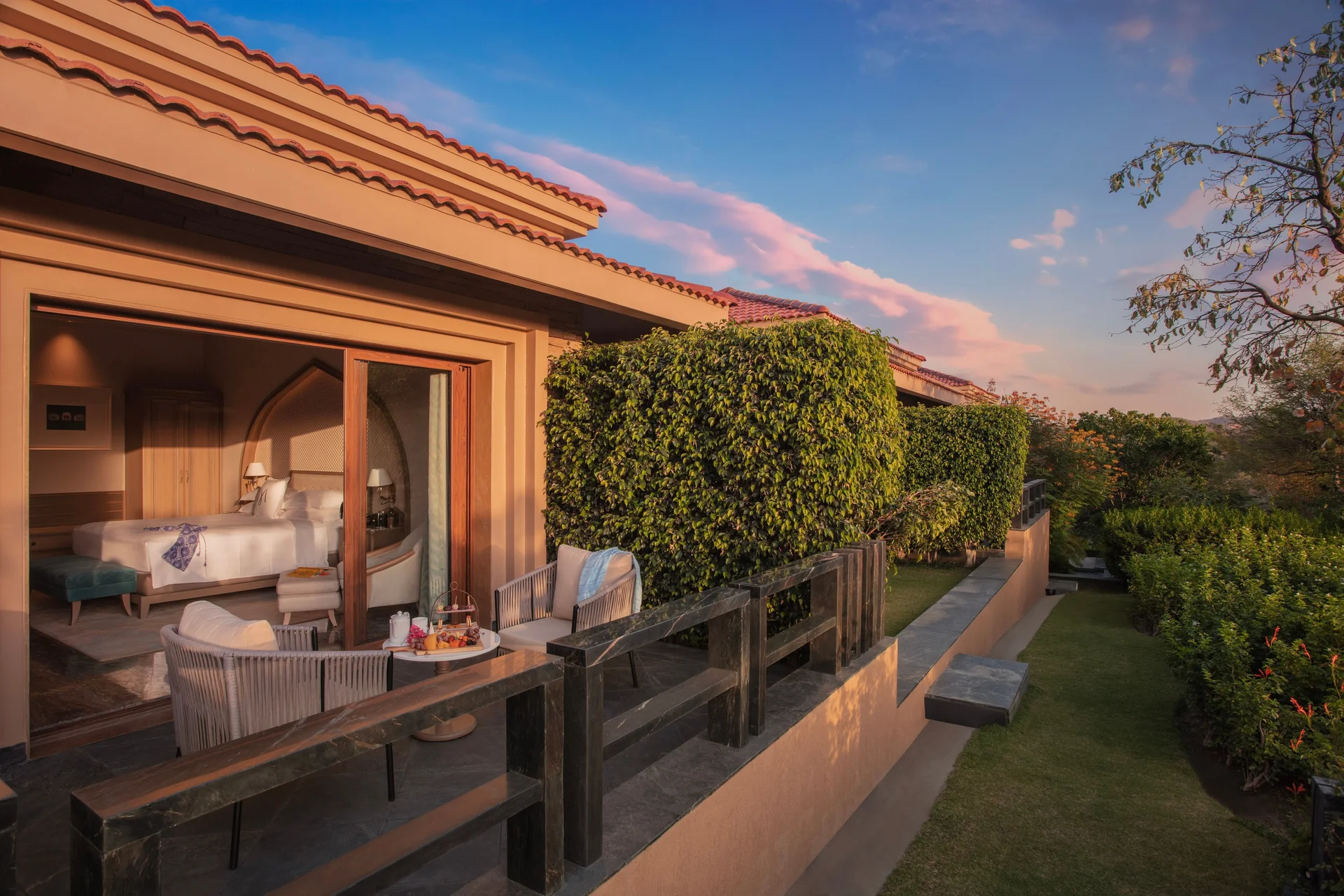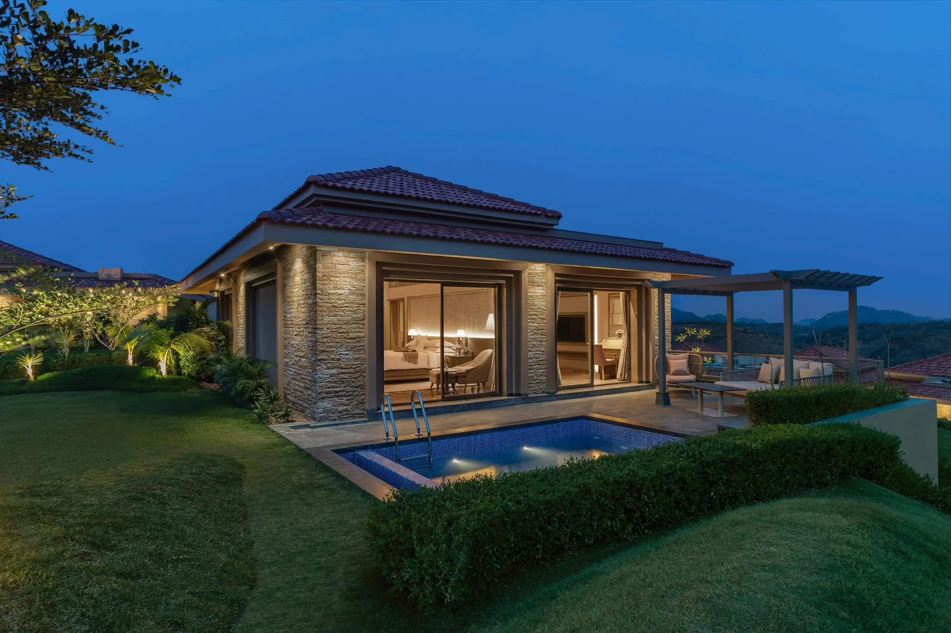 Escape to Mementos Udaipur, a destination that offers a unique sense of tranquility and seclusion. Set in a private valley, this resort is a world unto itself. Its design philosophy emphasizes a connection with nature, with stunning views of the surrounding hills from every vantage point. It's the perfect choice for the discerning couple seeking a grand celebration away from the crowds, in a setting that is both majestic and peaceful.