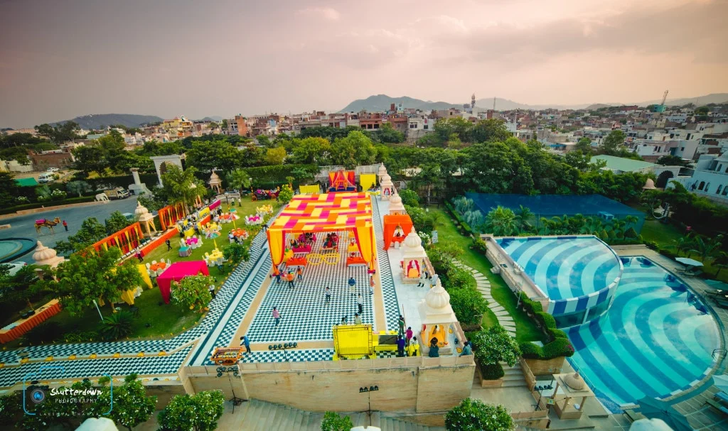 With 245 rooms, it has one of the highest room counts in Udaipur, allowing families to host 500-600 guests comfortably under one roof without splitting them across hotels.