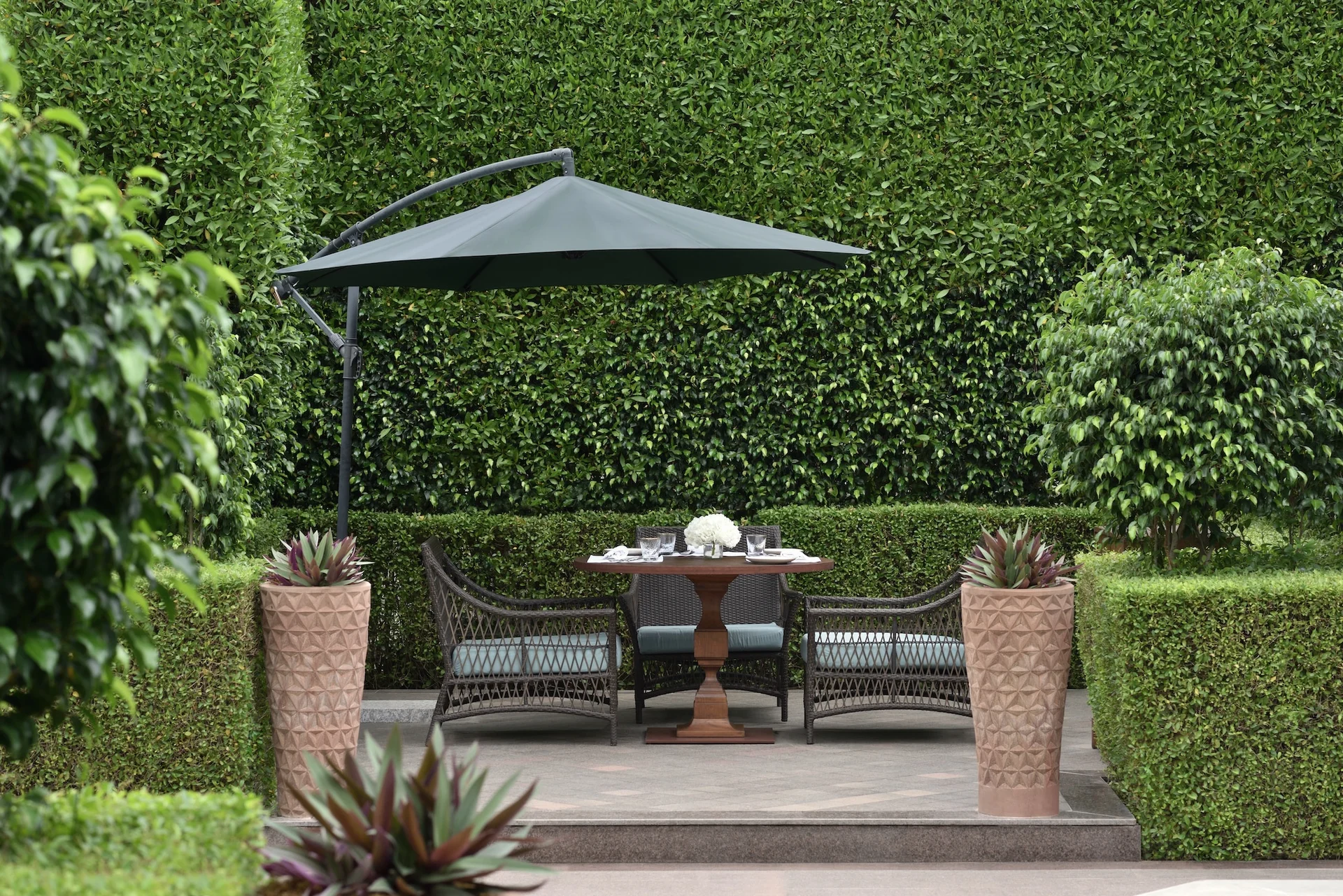 Beautifully manicured ornamental gardens inspired by Versailles, offering a grand and symmetrical setting for an outdoor wedding.