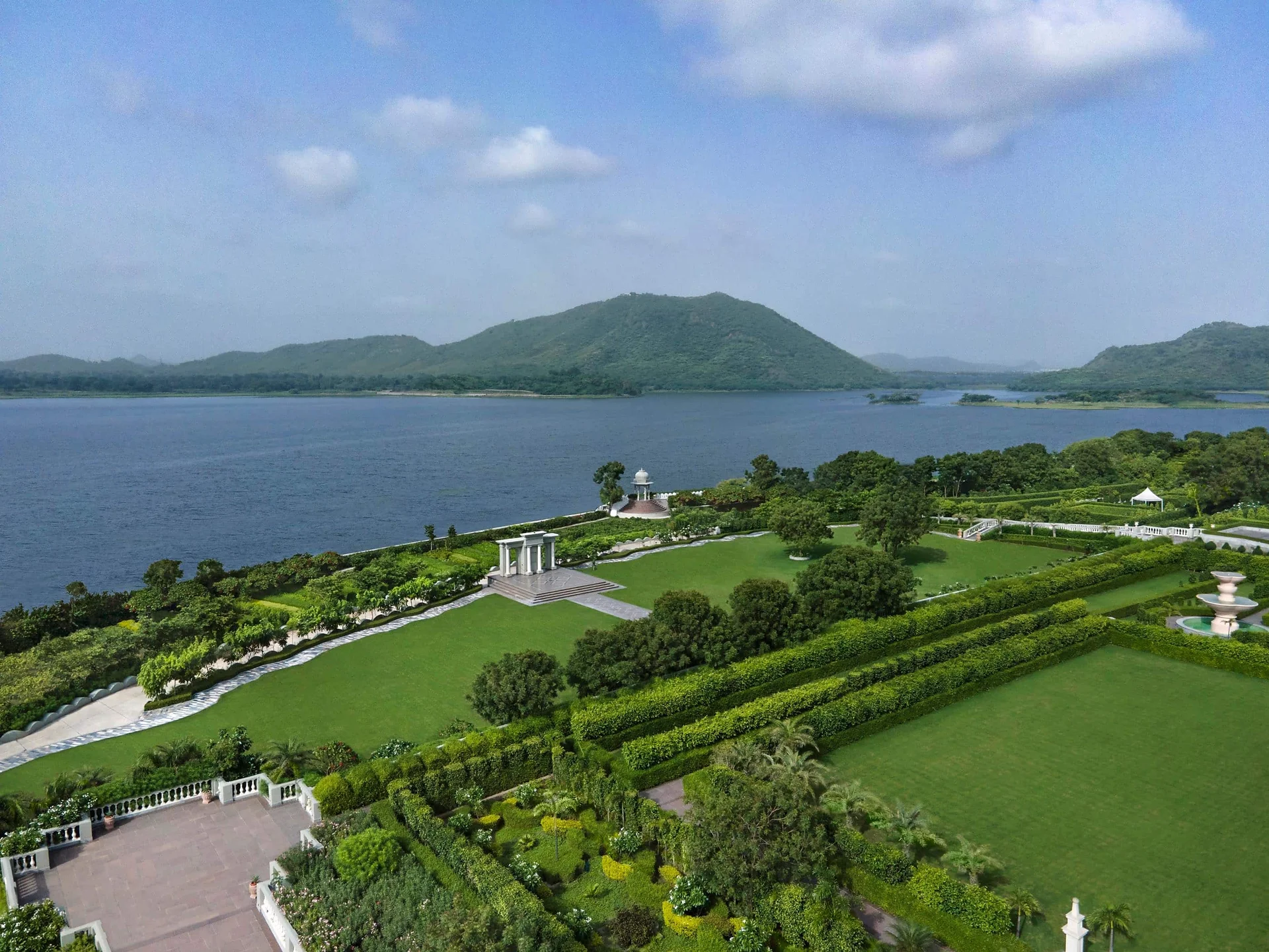 Raffles Udaipur is a destination unto itself. Situated on a 21-acre private island in the middle of Udai Sagar Lake, it offers a level of seclusion and grandeur that is unmatched. Unlike the heritage palaces of the city, Raffles is designed like a grand European country estate with manicured ornamental gardens and baroque architecture. It brings the legendary Raffles service (including personal butlers) to Rajasthan. From the ceremonial boat arrival to sipping the "Udaipur Sling" at the Long Bar, a wedding here is an affair of quiet, sophisticated luxury.