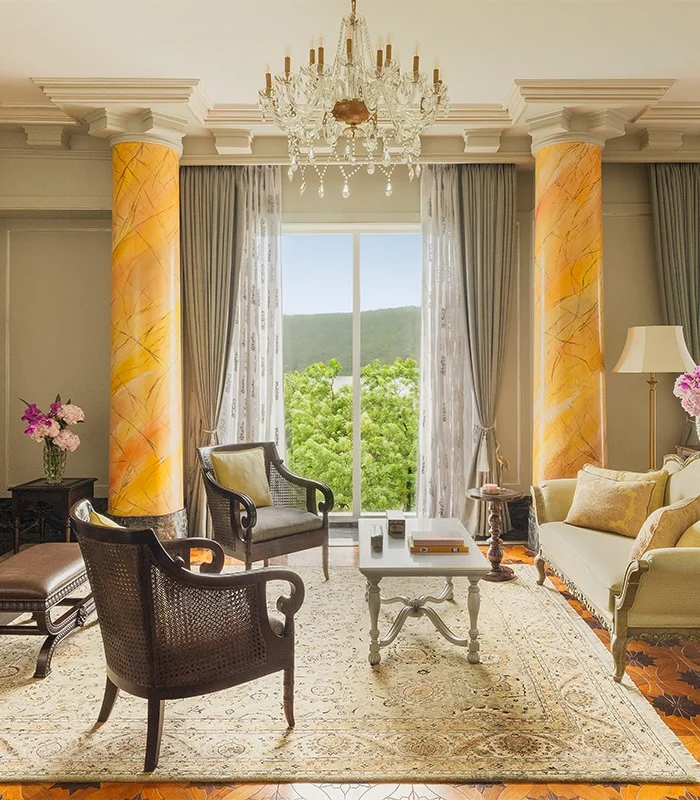 India’s first Raffles hotel located on a private island in Udai Sagar Lake, offering an ultra-exclusive European-style estate experience.