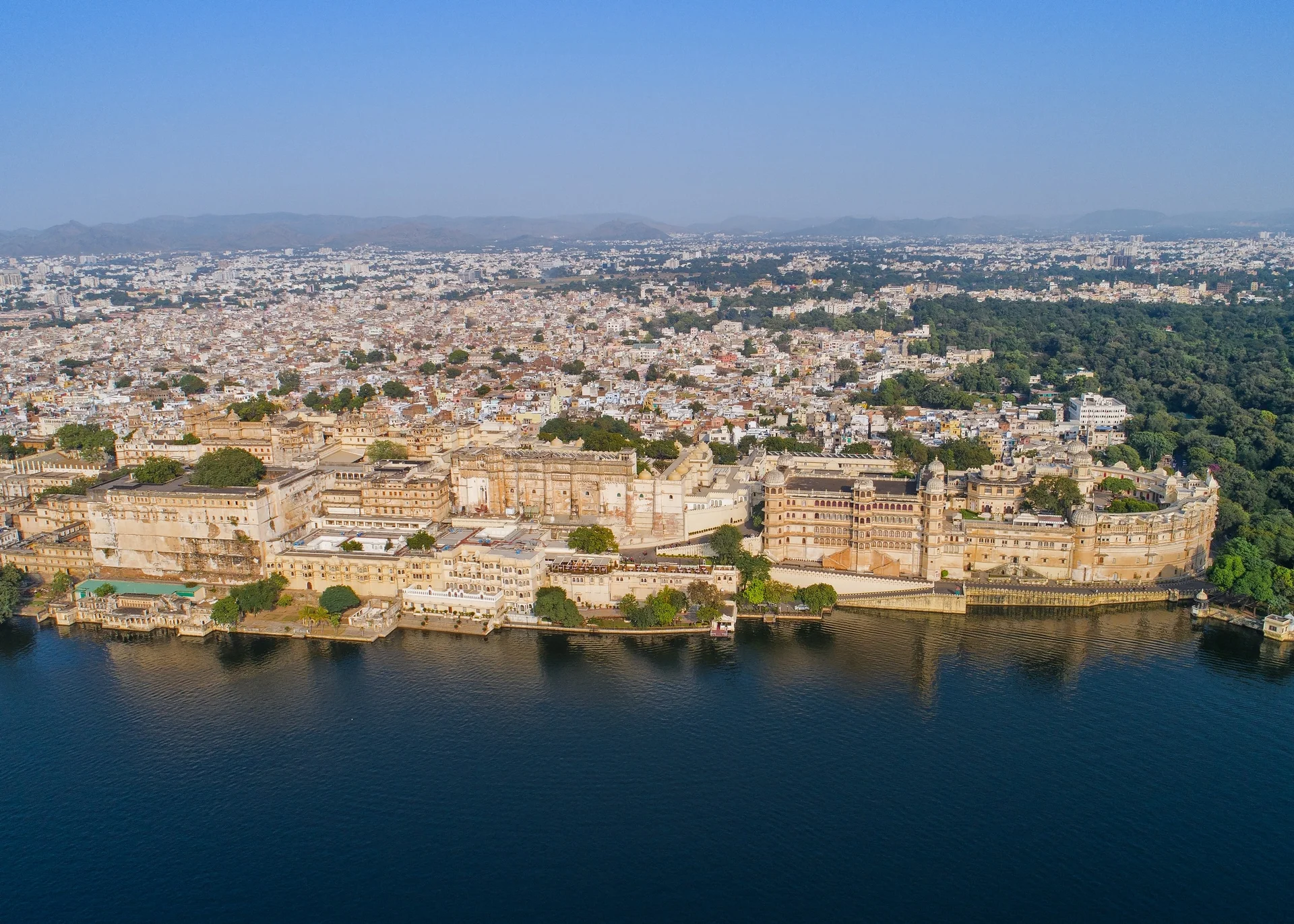 The crescent-shaped royal guest house within the City Palace, famous for its iconic pool deck and James Bond legacy.