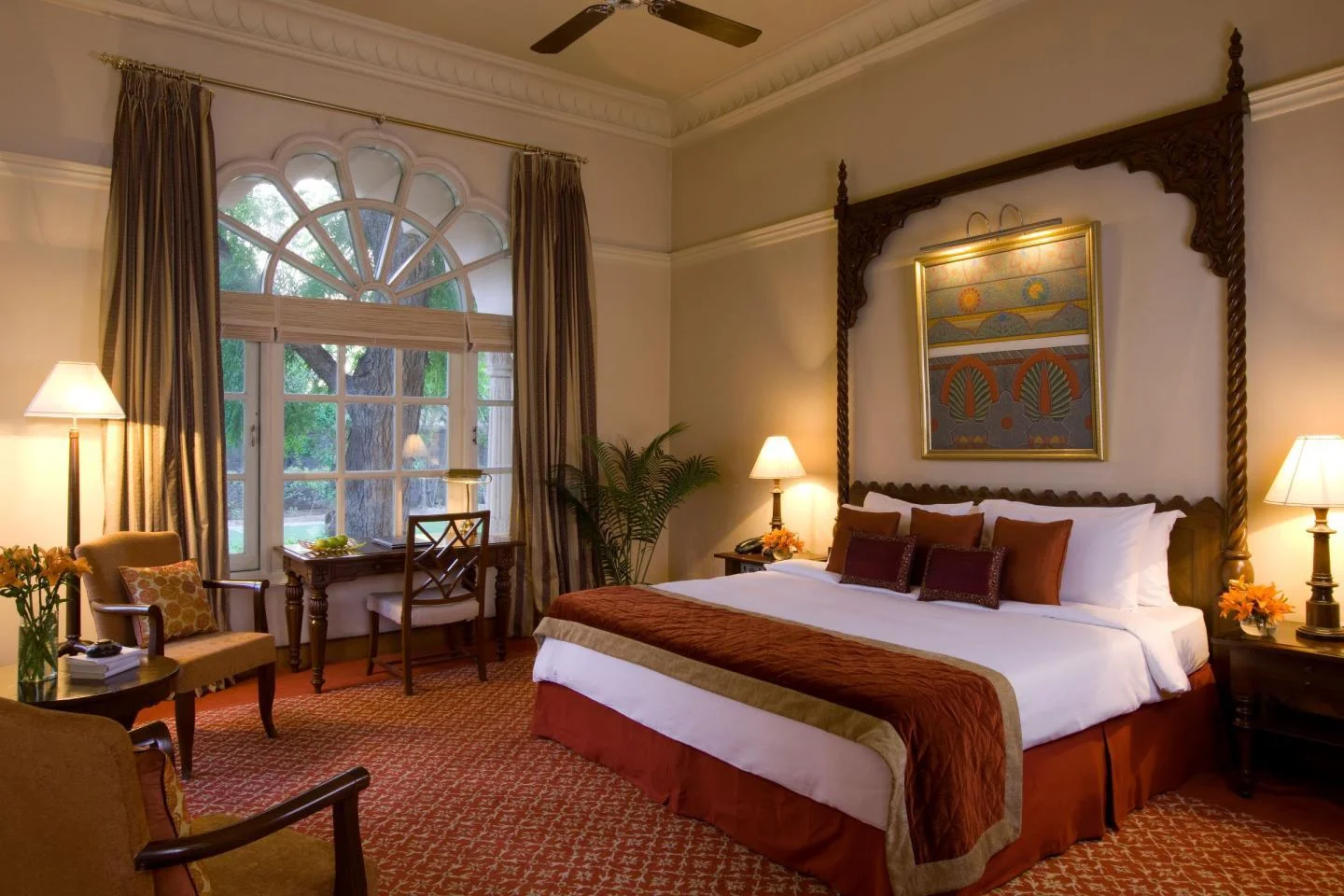Spread over six acres of lush landscaped gardens, Taj Hari Mahal is a tribute to the royal heritage of Jodhpur. Its architecture blends Marwar style with Moghul-inspired domes, enameled murals, and slender columns. While it offers modern luxury, it retains a deep connection to tradition with unique experiences like desert safaris and folk music under the stars. It is the perfect venue for a wedding that seeks a blend of the exotic past and contemporary comfort.