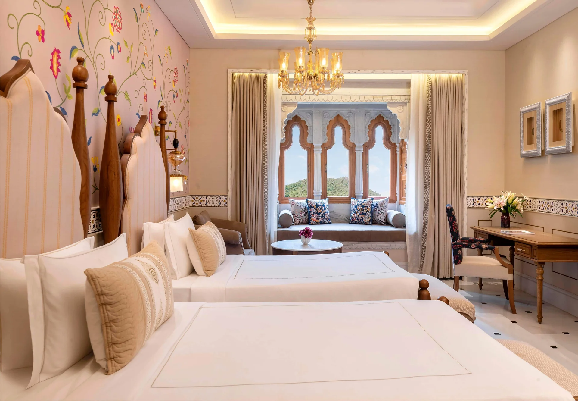A grand heritage palace built in 1911, perched on a hilltop overlooking the Fateh Sagar Lake and Aravalli ranges.