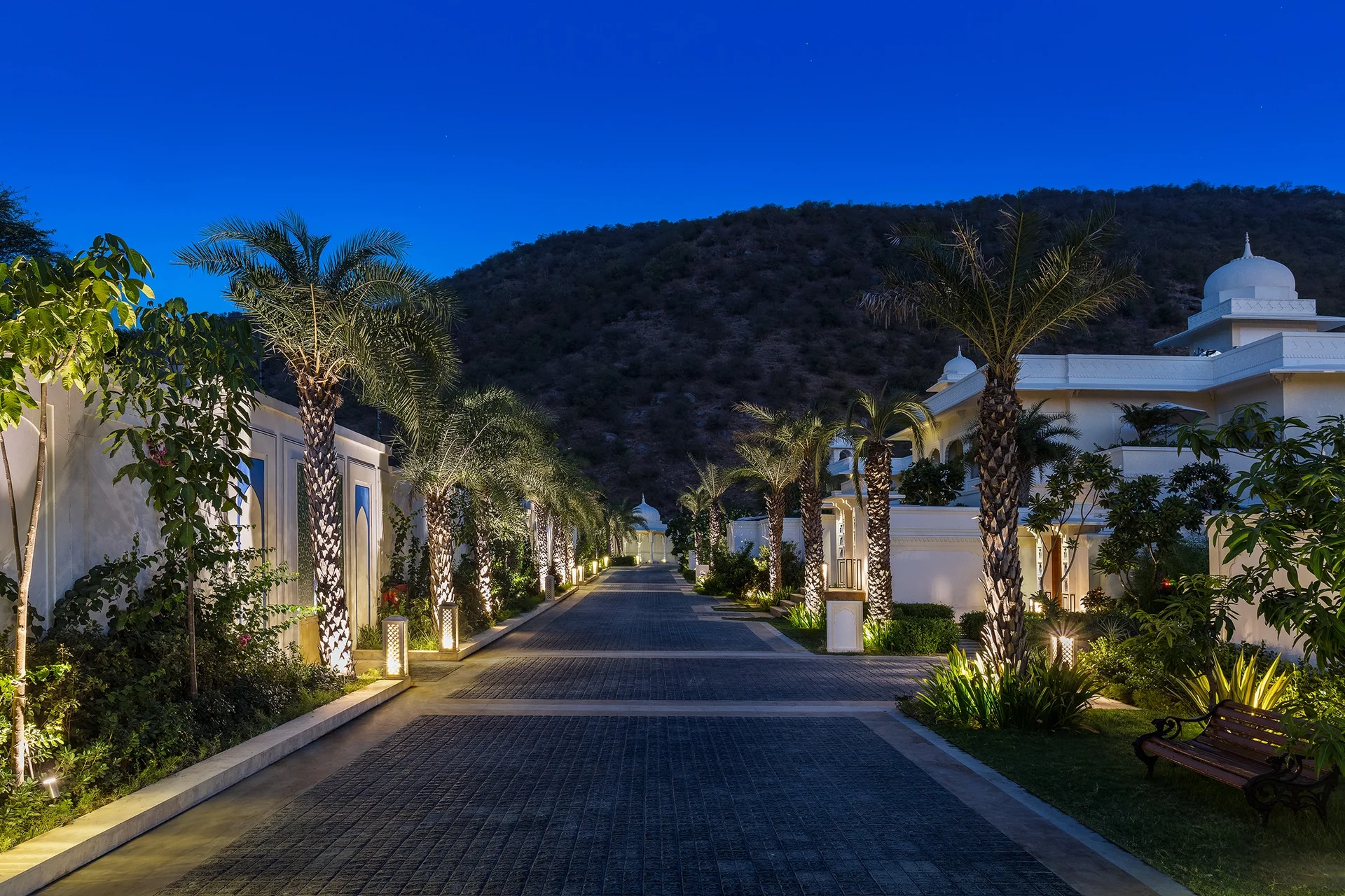 A modern architectural marvel paying homage to Rajputana heritage, featuring silver domes, 8 acres of landscaped gardens, and unparalleled opulence.